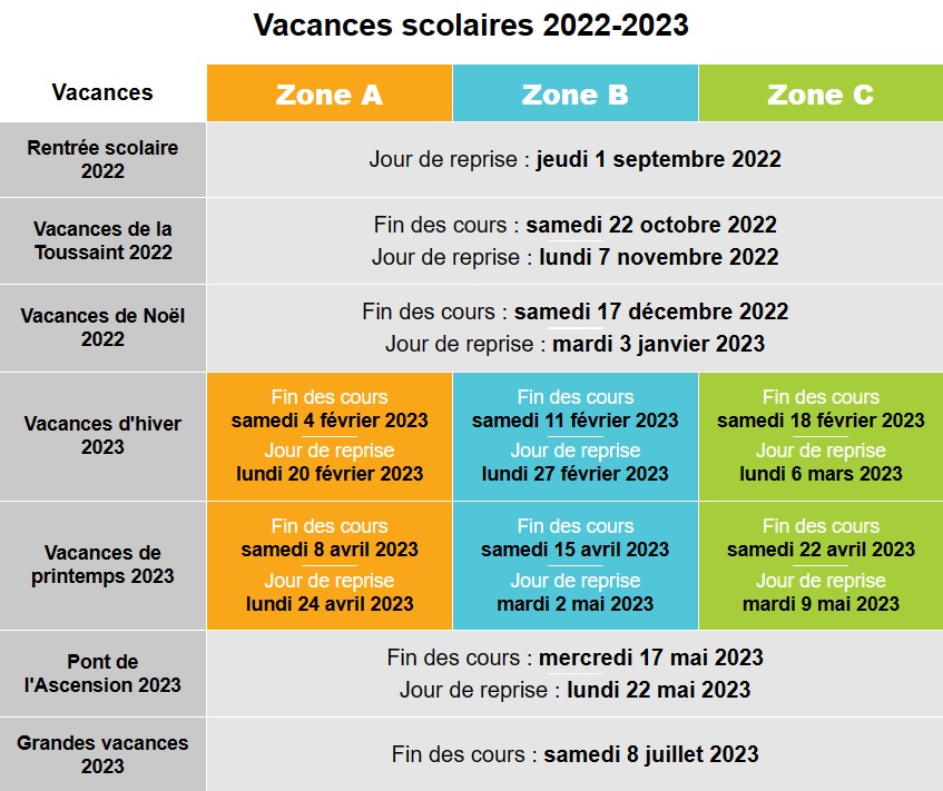 Vacances de Printemps : du 22 avril au 9 mai 2023